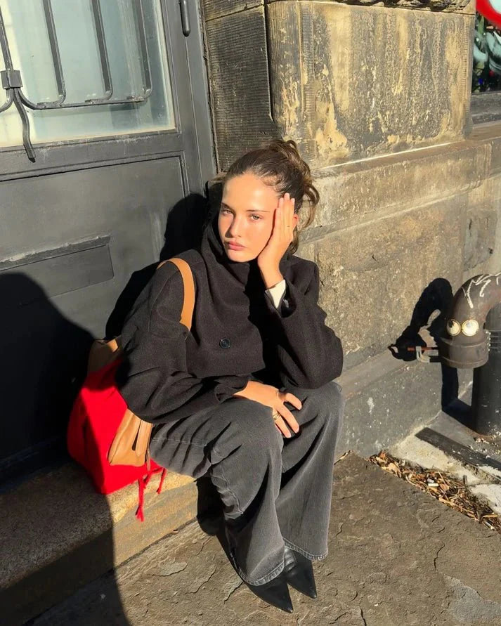 Discover the perfect blend of style and comfort with our Clarissa Jacket with Stand Collar. Designed for the modern woman, this jacket features a chic stand collar and a loose fit, making it ideal for both office wear and casual outings.