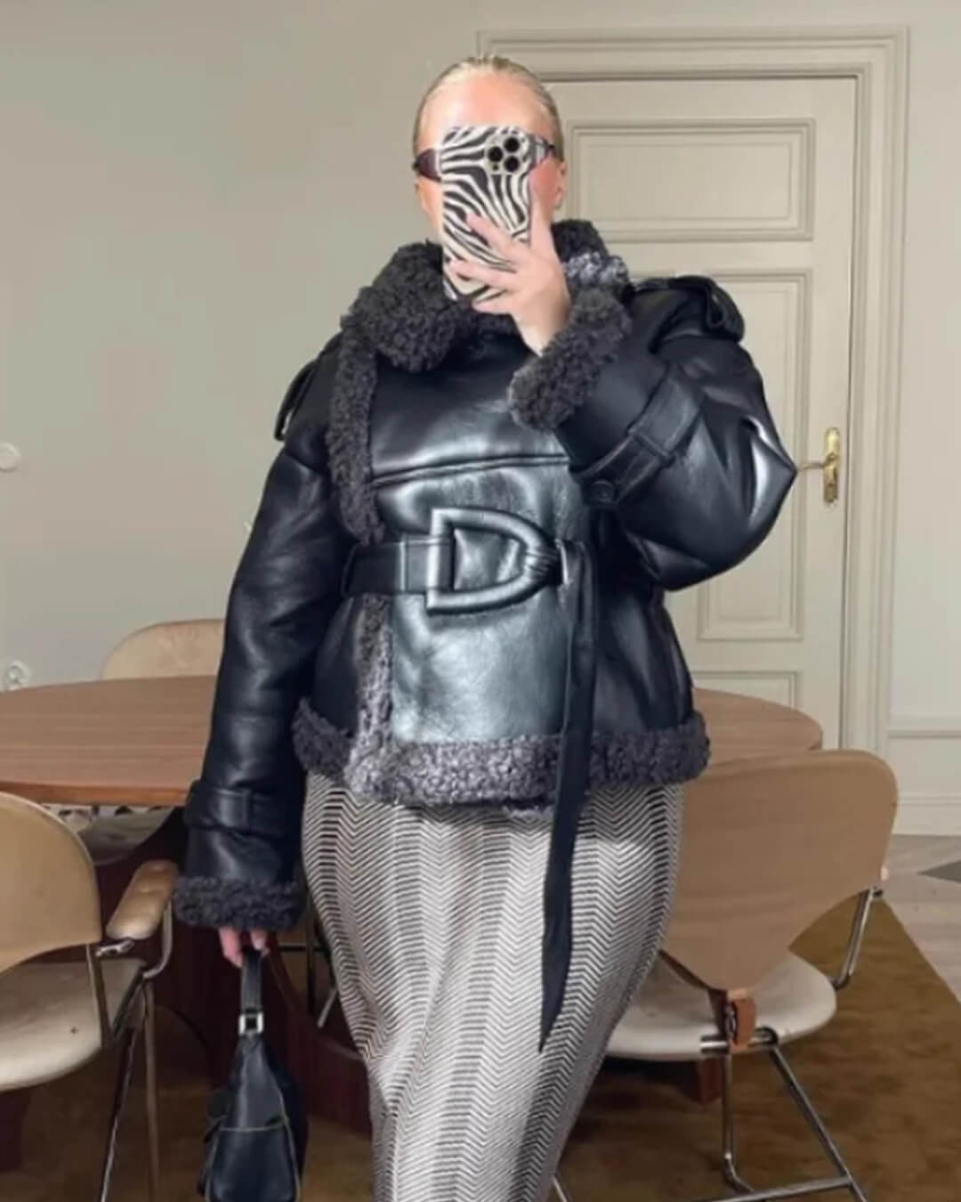 Elevate your winter wardrobe with this fashionable and versatile Cora Belted Faux Fur Trim Leather Jacket. Whether you're heading out for a casual day or dressing up for a night out, this coat is the perfect addition to your collection.