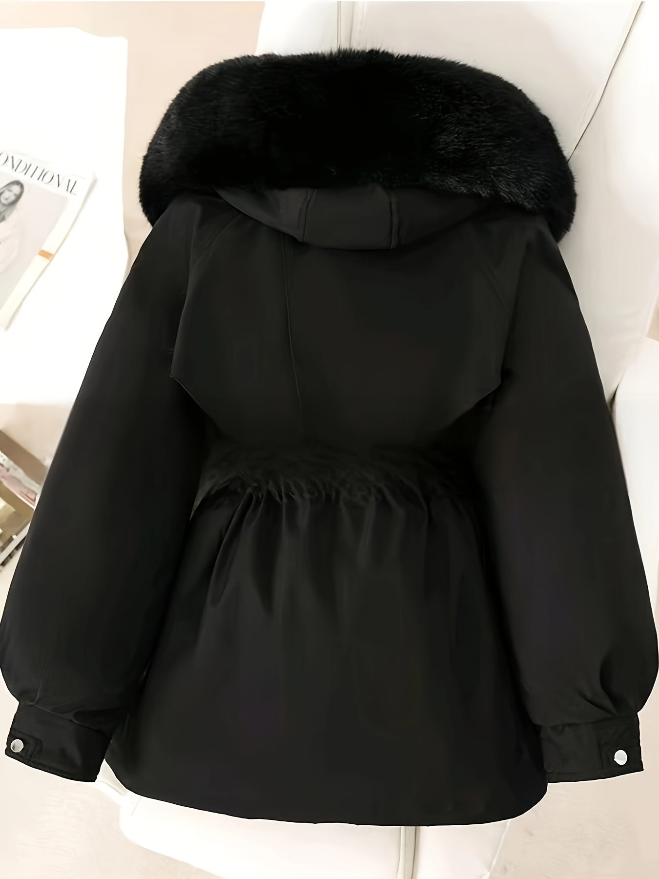Built for cold days, this utility-style parka jacket features a plush faux-fur trimmed hood, a cosy insulated body, and an easy zip-and-snap front for extra wind protection. The adjustable waist drawcord lets you wear it cinched for shape or relaxed for effortless layering over chunky knits.