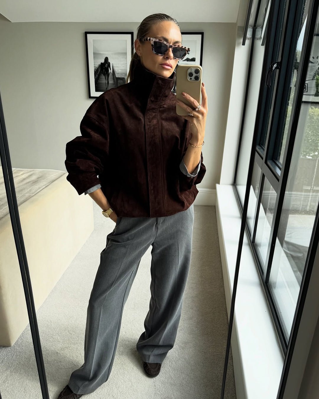 Viona Stand Collar Suede Jacket